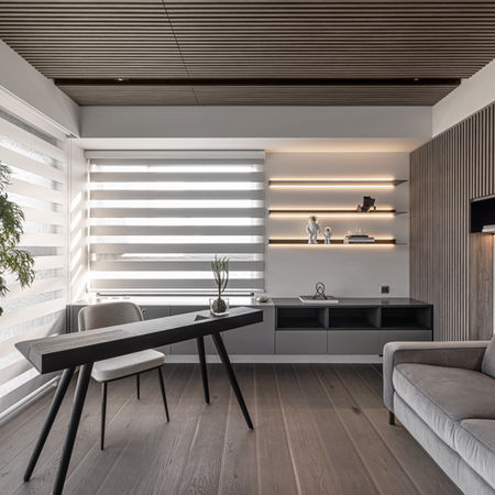 【Introduction】: Nestled in the heart of Taipei, this 60-square-meter duplex residence with three surrounding terraces and floor-to-ceiling windows has become a beacon of time amidst the bustling urban jungle. Catering to the homeowner's frequent travels and their desire for convenience, the entire residence is equipped with a smart system, embodying the digital lifestyle they aspire to.